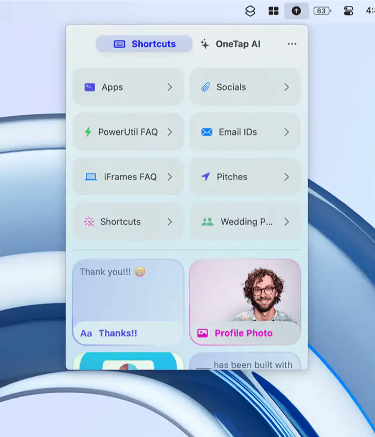 OneTap puts your clipboard history and favorite shortcuts right in the Mac menu bar, letting you copy, paste, and organize anything instantly; text, links, photos, files, even AI prompts..