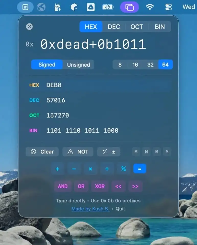 Hexa gives you instant number conversions and live expression evaluation in one small menu bar app, so hex, binary, and bitmasks finally make sense without extra tabs or calculators.