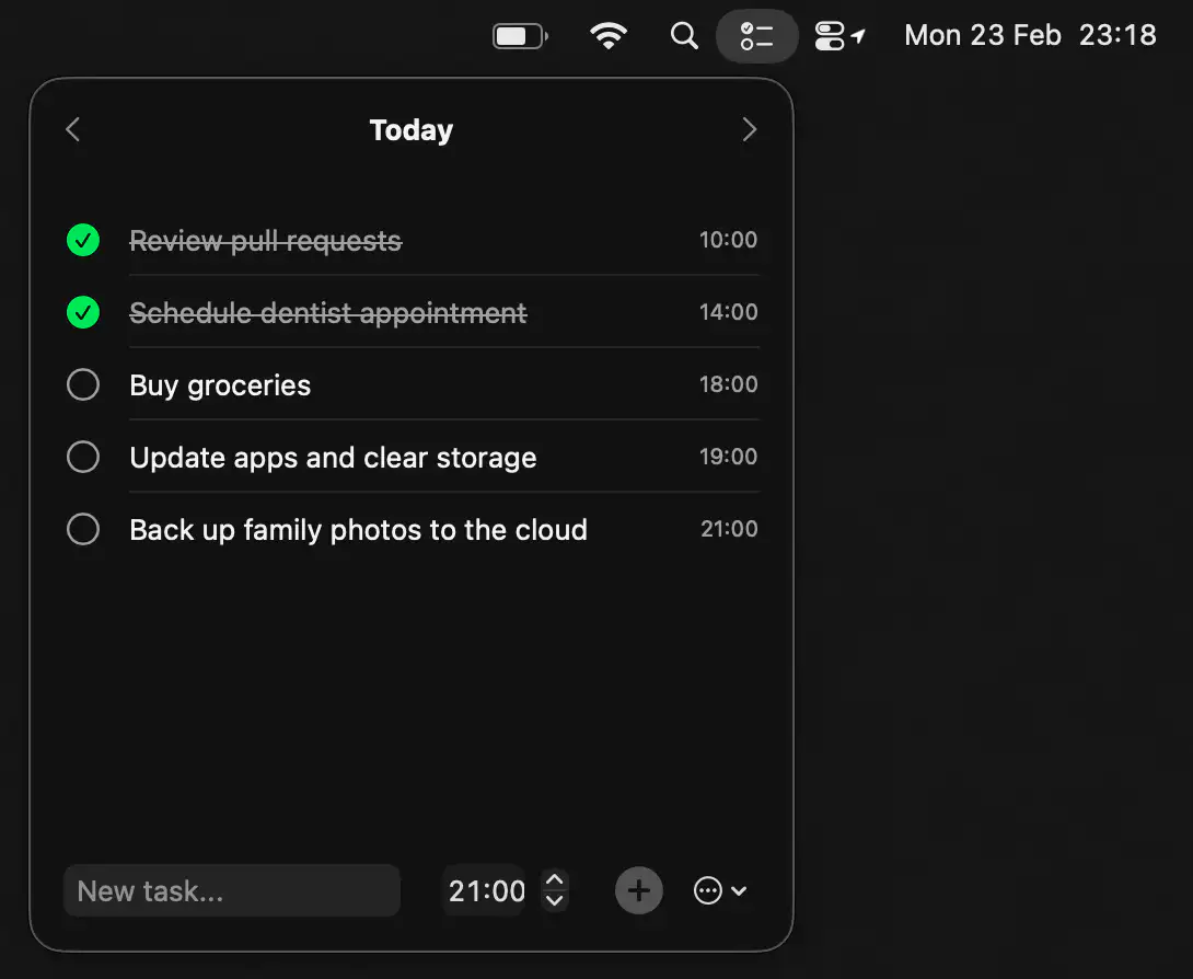 Cue keeps your day focused with a simple, distraction-free task list that lives one click away. Add tasks, set reminders, and move between days effortlessly, all wrapped in a clean, native macOS design that stays ready whenever you are.