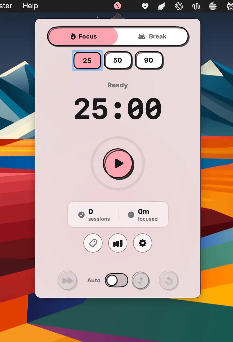 Adoro is a lightweight focus timer built for zero friction. Start a quick Pomodoro, tag sessions, and gain useful productivity insights without accounts or ads. It even syncs with AuraFi to automatically play and pause music as you work..