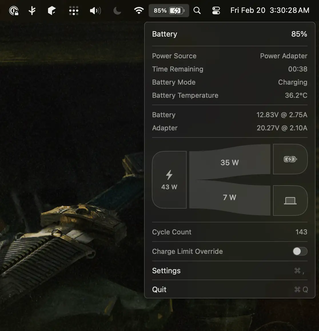Stasis replaces the standard battery indicator with something far more informative, offering real-time power metrics, adjustable charge limits, and direct control over charging behavior so you can extend your MacBook’s battery lifespan without relying on Apple’s mysterious optimization logic.