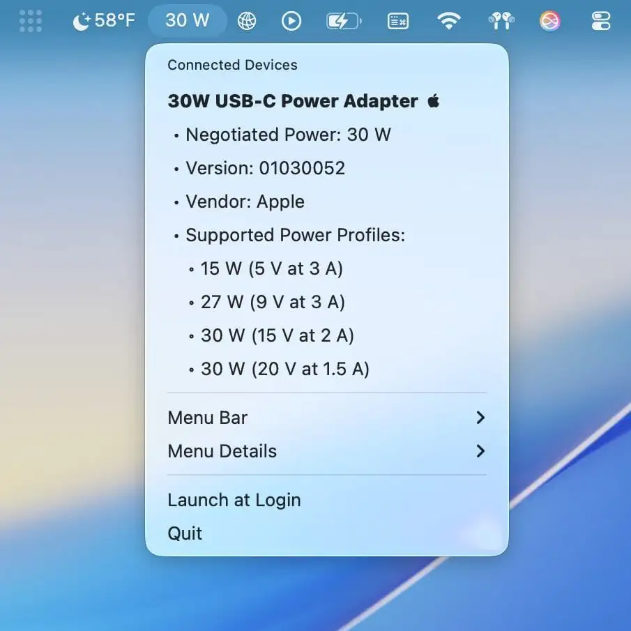 Quickly see what’s really happening with your USB devices. This lightweight menu bar app shows live connection speeds, power usage, and device details—so you’ll always know if your gear is performing.